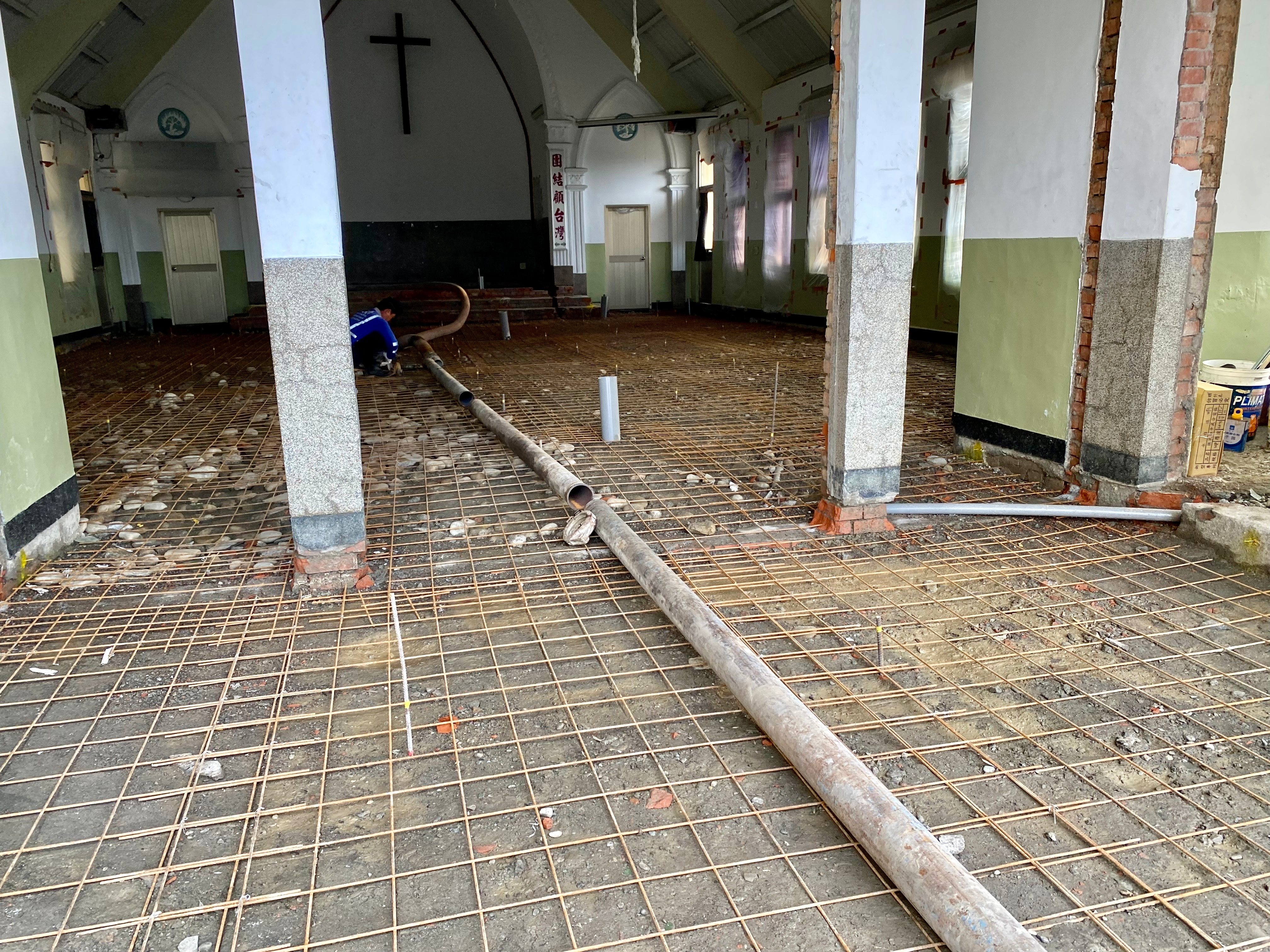 走過數十載春秋,斑駁的地坪與受潮的舊木架,見證了無數次的敬拜與禱告。看著原本的地板逐漸碎裂,我們心中有不捨,更有對未來的盼望。